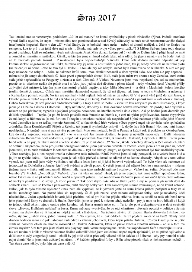 SRAZ 2017:Vzpomínka na školní léta strávená za totáče...